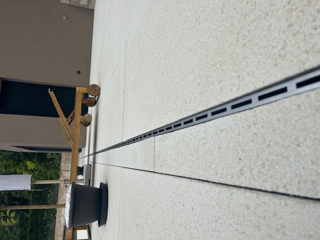 Pro realizaci byly zvoleny odvodňovací žlaby MEAFLUID, doplněné o ocelové štěrbinové nástavce TSL s nerezovým designovým krytem E-Blade. Výsledkem je čisté, minimalistické řešení, které se perfektně začlení do moderní architektury rodinného domu.