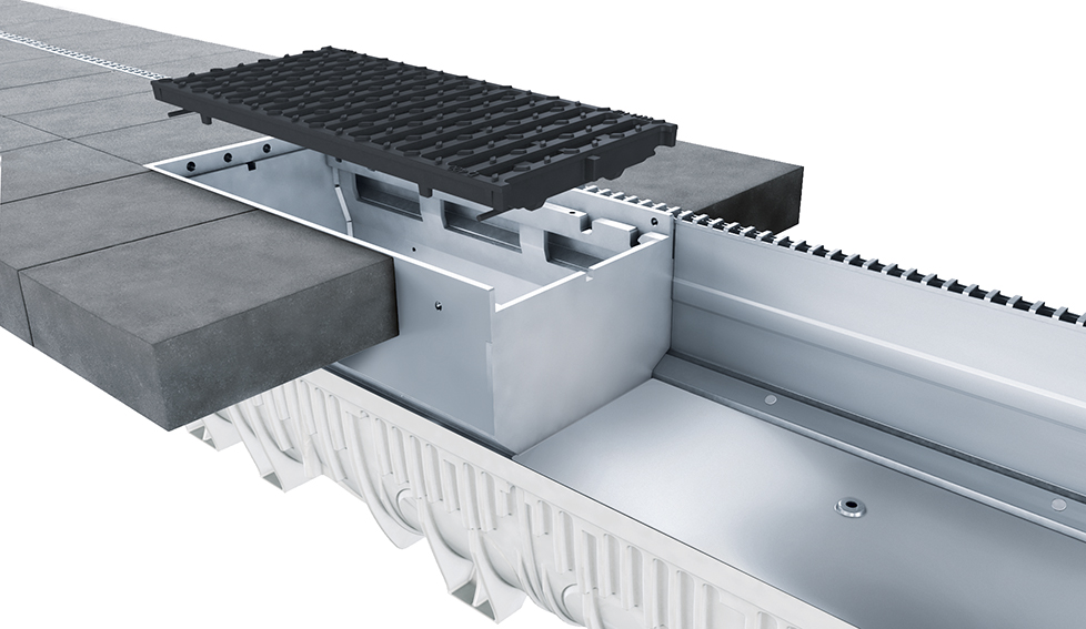 Systém štěrbinového odvodnění MEA umožňuje velkou hydraulickou kapacitu. Úzká štěrbina na povrchu působí elegantně a nenápadně, zatímco pod povrchem se skrývá robustní žlab, který efektivně odvádí dešťovou vodu i při silných srážkách.