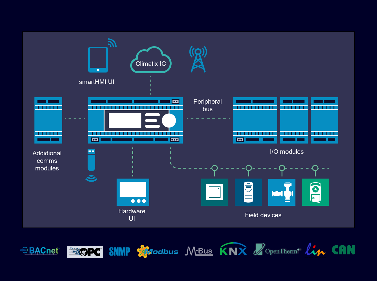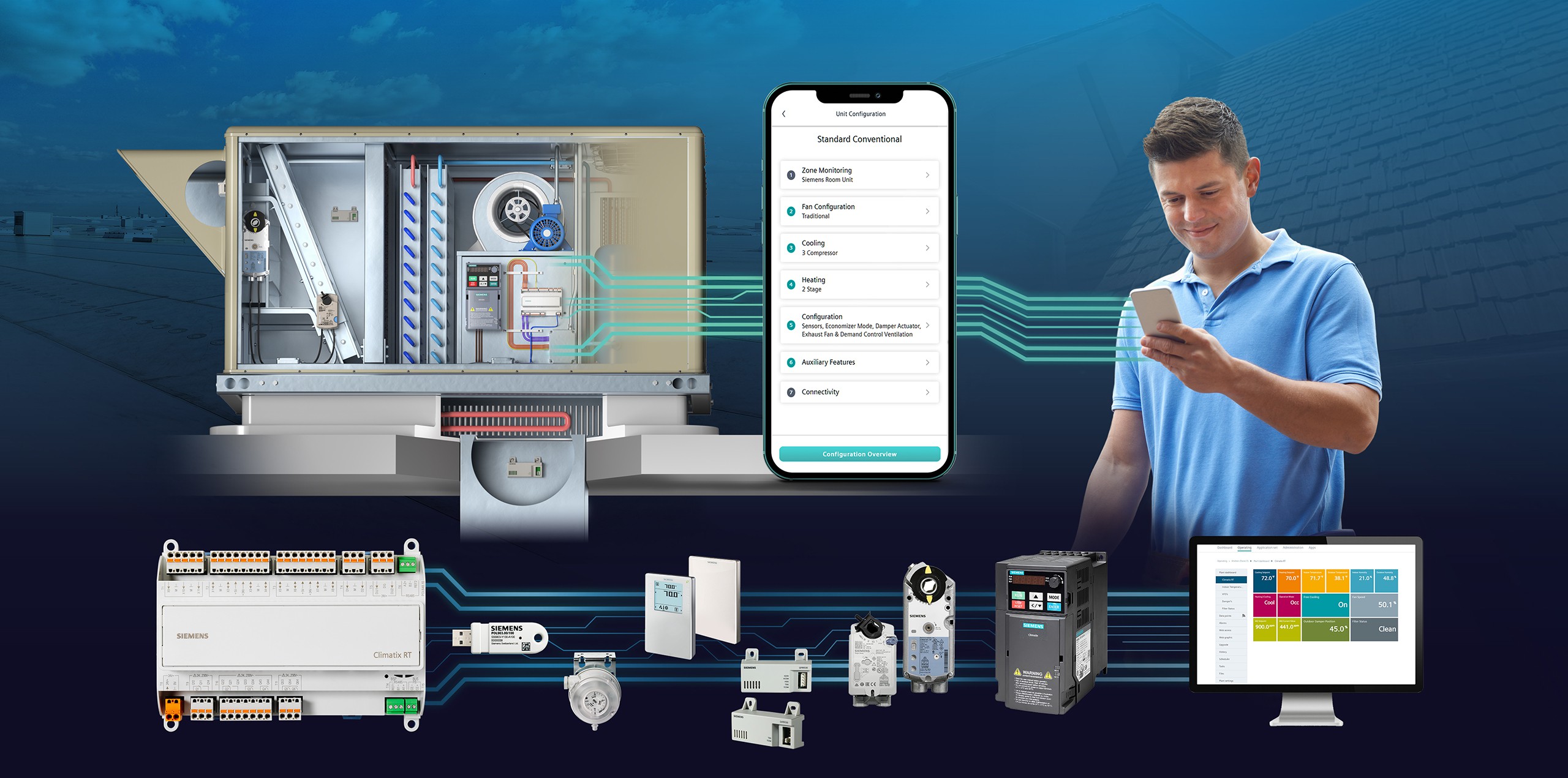 Systém Climatix je jedním z klíčových produktů pro oblast HVAC (Heating, Ventilation and Air Conditioning) a je „srdcem“ celého systému řízení. Jde o pokročilé řešení regulace, které spojuje dlouholetou zkušenost, flexibilitu, efektivitu a připravenost na digitální výzvy budoucnosti. Climatix je kompletní řídicí platforma určená pro výrobce HVAC zařízení (OEM). Nabízí škálovatelné a modulární řešení pro řízení široké škály aplikací – od jednoduchých ventilátorových jednotek až po komplexní chladicí systémy, tepelná čerpadla, klimatizační jednotky, přesné chlazení a systémy dálkového vytápění či chlazení. Mezi jednoznačné technologické výhody patří modularita a škálovatelnost. Climatix je dostupný v provedení od malých základních regulátorů Climatix S400 až po komplexní jednotky Climatix C600, které umožňují přizpůsobení specifickým požadavkům OEM zákazníků. Podpora standardních komunikačních protokolů, jako jsou BACnet, Modbus, LON, M-Bus, OpenTherm a OPC, zajišťuje snadnou integraci do systémů řízení budov. Energetickou efektivitu umožňují pokročilé algoritmy v dostupných knihovnách. Například knihovny pro řízení expanzních ventilů, kompresorů a dalších komponent vedou k optimalizaci spotřeby energie a zvýšení účinnosti celého systému. Climatix nachází uplatnění v celé řadě aplikací jako jsou vzduchotechnické jednotky, chladicí systémy a tepelná čerpadla, přesné chlazení či řízení zdrojů i pro dálkové vytápění a chlazení. Volně programovatelné prostředí nabízí přednastavené aplikace a rozsáhlé HVAC knihovny funkcí umožňující rychlé nasazení a konfiguraci. Vývojové prostředí například umožňuje řízení celých hydronických systémů včetně sekvencí zdrojů. Systém je též vhodný pro datová centra, mobilní telekomunikační stanice a laboratoře. Nabízí možnost vzdáleného servisu, archivace dat a optimalizaci spotřeby od výroby po distribuci.