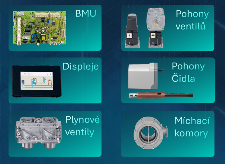 Vzhledem k tomu, že tyto prvky jsou vždy „v terénu“ jako součást dodávek specializovaných výrobců (kotle, hořáky, různé typy technologických linek ve zpracovatelském průmyslu), v rámci TZB odborné veřejnosti se o nich nemluví tak často. Proto zde formou „klíčových produktových reprezentantů“ prezentujeme nejdůležitější prvky. Konkrétní výběr produktů je řešen vždy s konkrétním výrobcem (kterých v České republice v současné době již mnoho není) anebo se servisními organizacemi zajišťující servis pro konkrétní dodavatele evropských kotlů a hořáků umístěných v České republice.