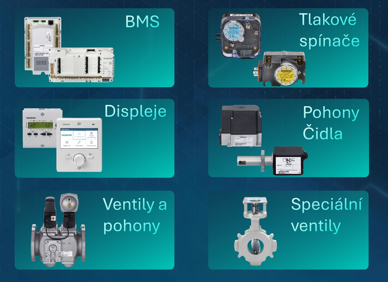 Velmi důležitou součástí celého ekosystému Siemens pro výrobce jsou i další prvky v systému. Ventily v různých provedeních a dimenzích (přírubové, závitové; 2- až 6-cestné, různé tlakové třídy) a pohony (elektrické, elektrohydraulické nebo elektromagnetické) s výběrem pro různé aplikace jsou klíčové pro správnou hydraulickou funkci celého systému. Obdobně i pohony pro vzduchotechnické klapky v různých provedeních jsou důležité pro správnou funkci jak vzduchotechnických jednotek, tak i v rozvodech vzduchu po budovách. A aby celý systém měl správné informace, nabízíme pro výrobce i širokou nabídku čidel (teploty, kvality vzduchu, vlhkosti, tlaku). Jednotlivé prvky si výrobci volí podle konkrétní technologie a velikosti „jednotky“ nebo celého systému TZB.