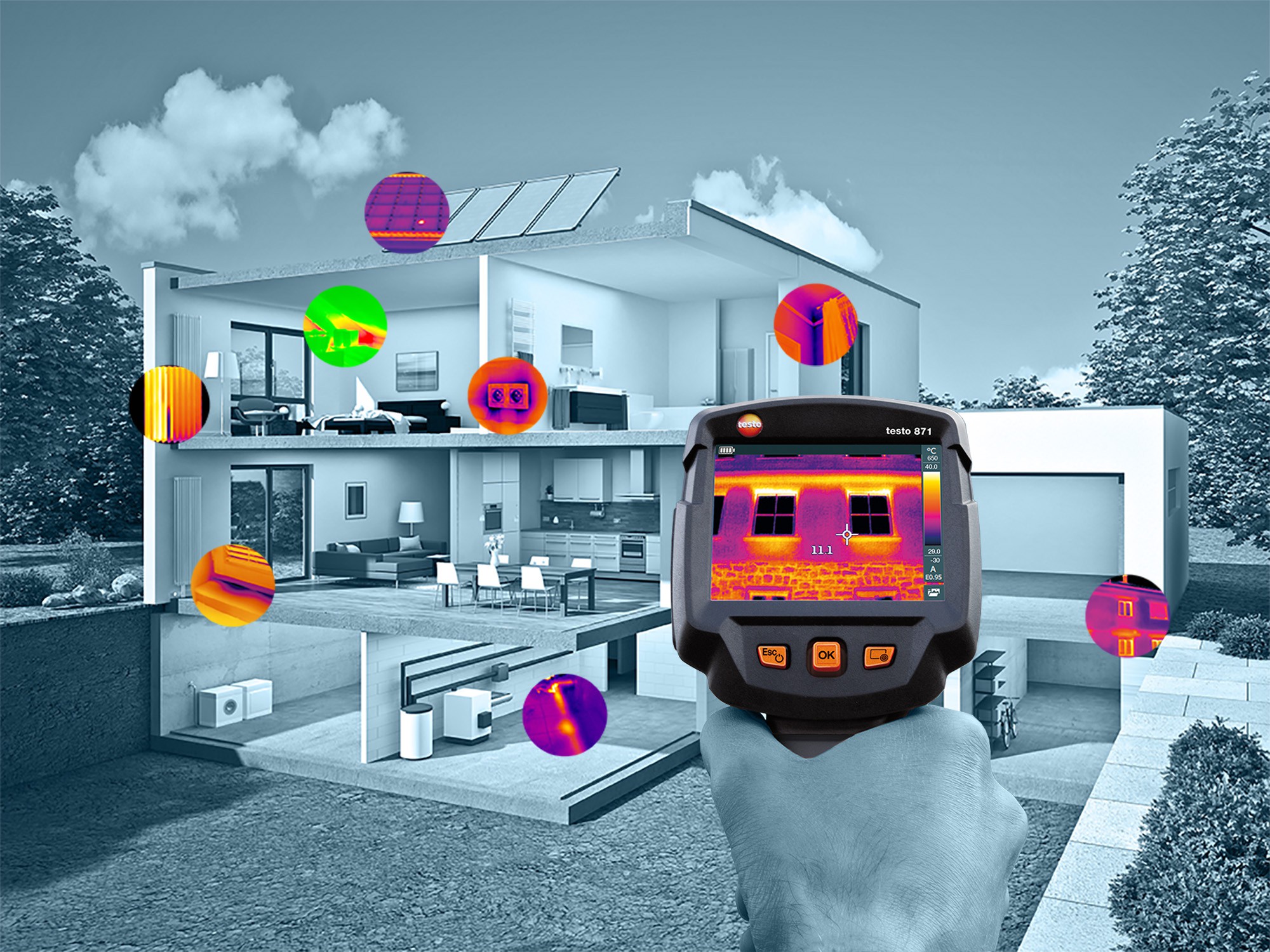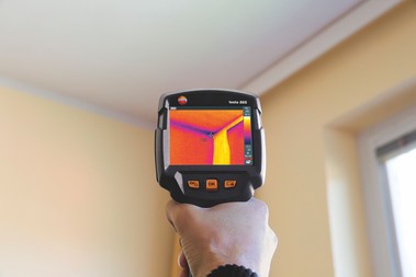 Termokamery Testo odhalí rychle a spolehlivě odchylky a závady na pláštích budov nebo ve vnitřních prostorách. Materiály a části staveb se pomocí zobrazovací metody kontrolují naprosto nedestruktivně. Bezdotykově lze určit místa energetických ztrát, tepelných mostů a úniků tepla. Zatímco u jiných metod se musí systémy vedení a potrubí ve velké ploše rozebrat, s termokamerou Testo stačí jeden jediný pohled. V termografii budov je jedinečné zobrazení povrchové vlhkosti pro rychlou lokalizaci míst s rizikem výskytu plísní.