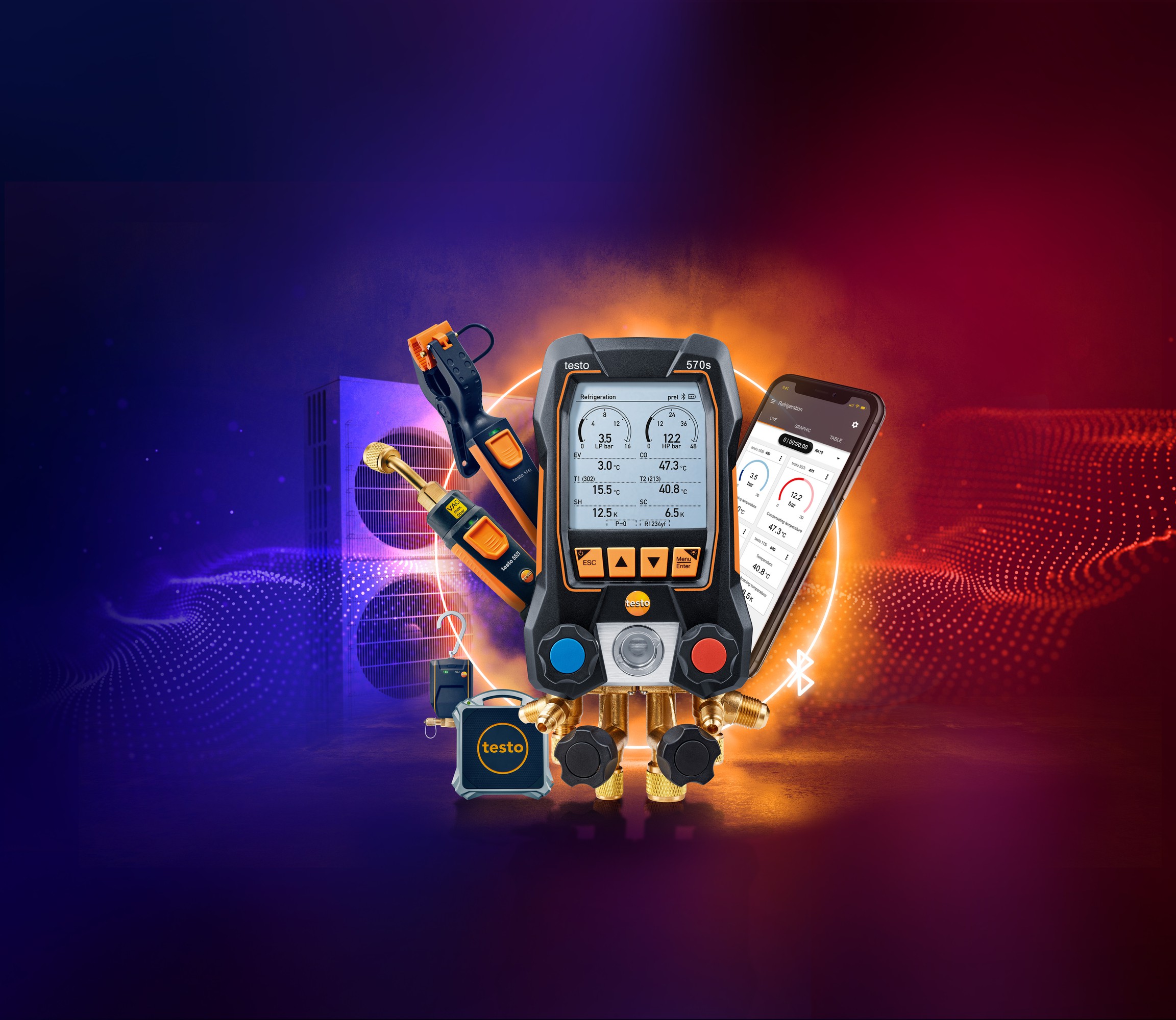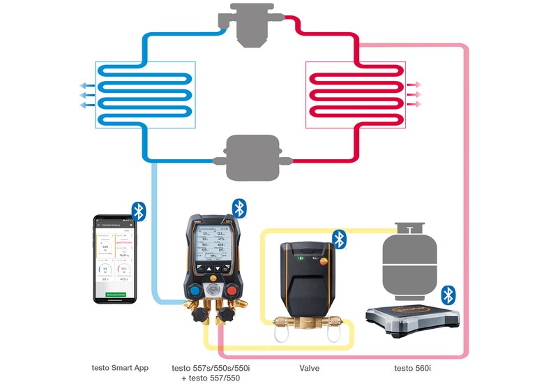 Bezdrátovou sondu lze propojit s aplikací testo Smart App a ovládat ji tak plně bezdrátově. Měření probíhá přes jediný servisní port, není se tedy třeba bát ztráty chladiva. Sondu lze také připojit pomocí bluetooth k příslušnému digitálnímu servisnímu přístroji od společnosti Testo.