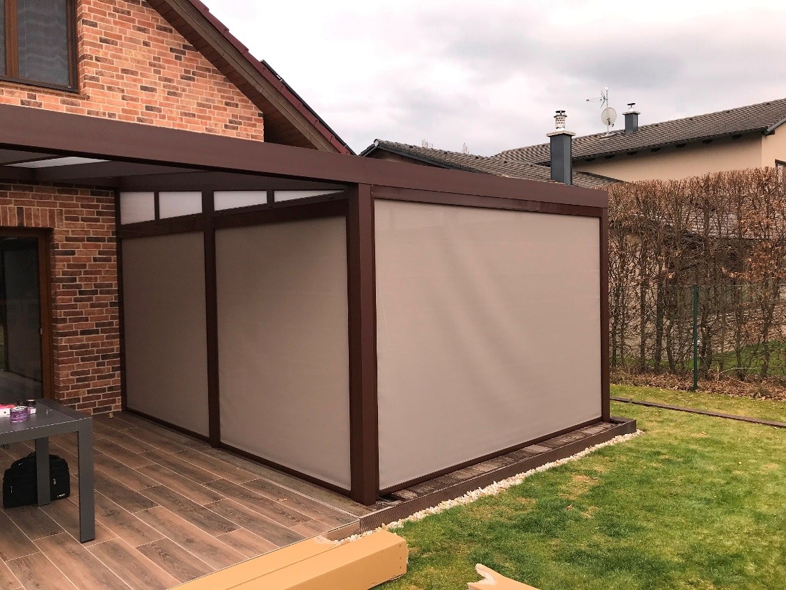 Tentokrát se z pohodlí svého domova přesuneme do venkovních prostorů. Lze totiž velmi elegantně a především účelově zastínit boční prostory terasy nebo pergoly. V takto chráněném prostředí se dá příjemně sedět a trávit tak odpočinkový čas s rodinou nebo přáteli.