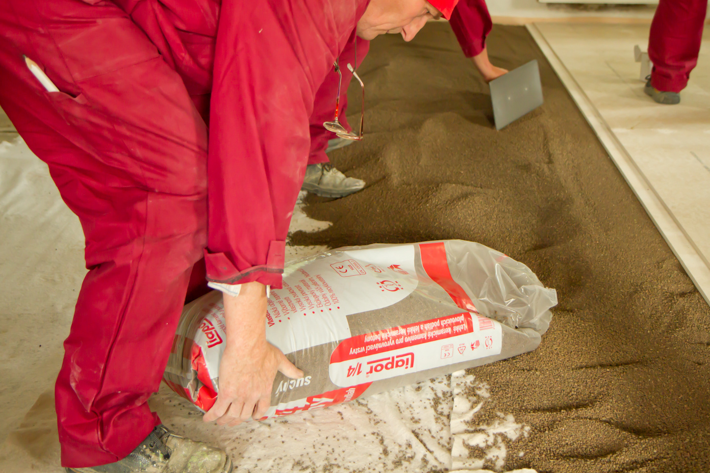 - Vyrovnání nerovností: Keramzitový podsyp umožňuje snadné vyrovnání malých i velkých nerovností podkladových vrstev.