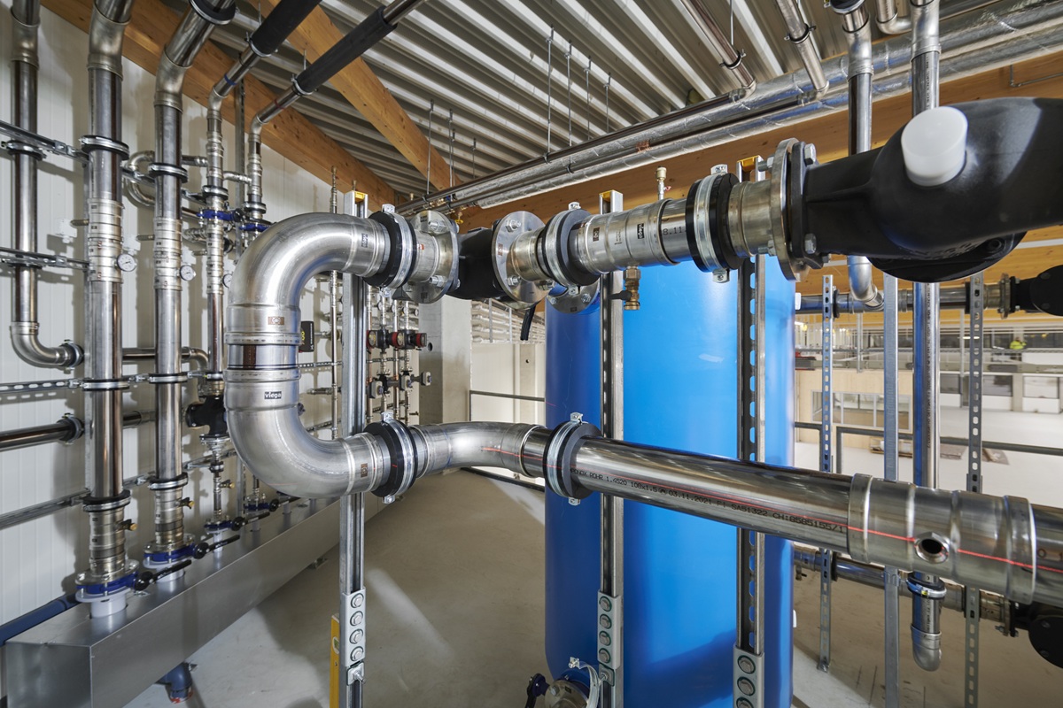 Potrubní systém Viega Temponox s nerezovými lisovacími spojkami (chrom-nikl) je k dispozici v široké škále rozměrů od 15 do 108 mm. (foto: Viega)
