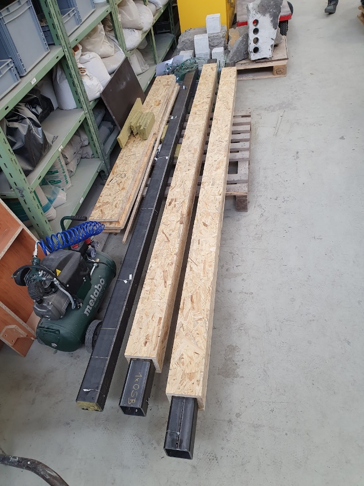 Z důvodu očekávaných deformací byla zvolena vyšší tloušťka stěny ocelového profilu. Profil SHS 100/6 z oceli S235JR byl navržen tak, aby při ukončení zkoušky nebyly překročeny průhyby na nechráněném nosníku více než 400 mm (odpovídající mezi kluzu 63,5 MPa). Nechráněný nosníky byl zatíženy na úroveň 60 % plastického momentu.