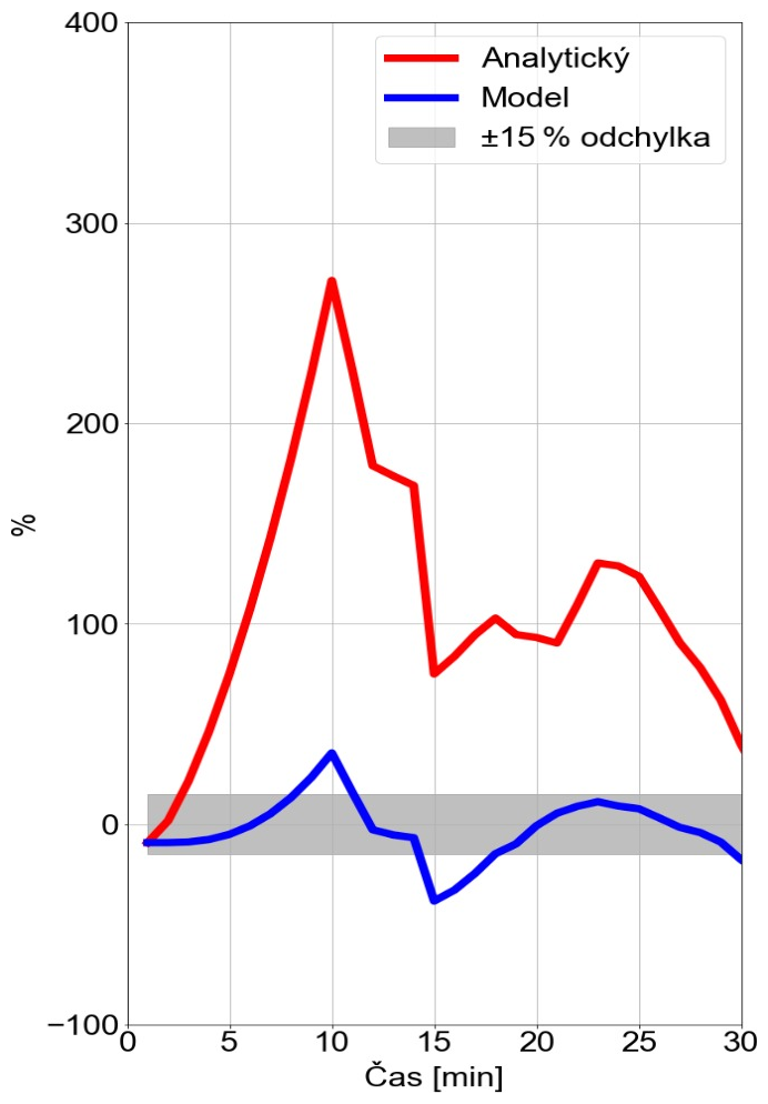 Obr. 4: Srovnání relativní chyby teploty modelů s experimentem