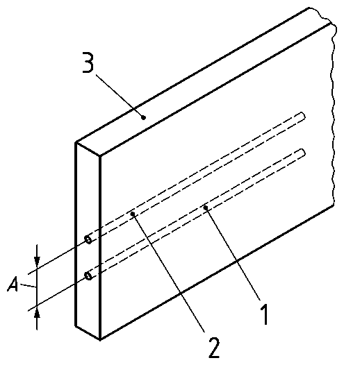 1 – potrubie studenej vody, 2 – teplovodné potrubie, 3 – stena (podlaha) [4]