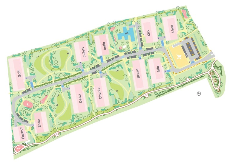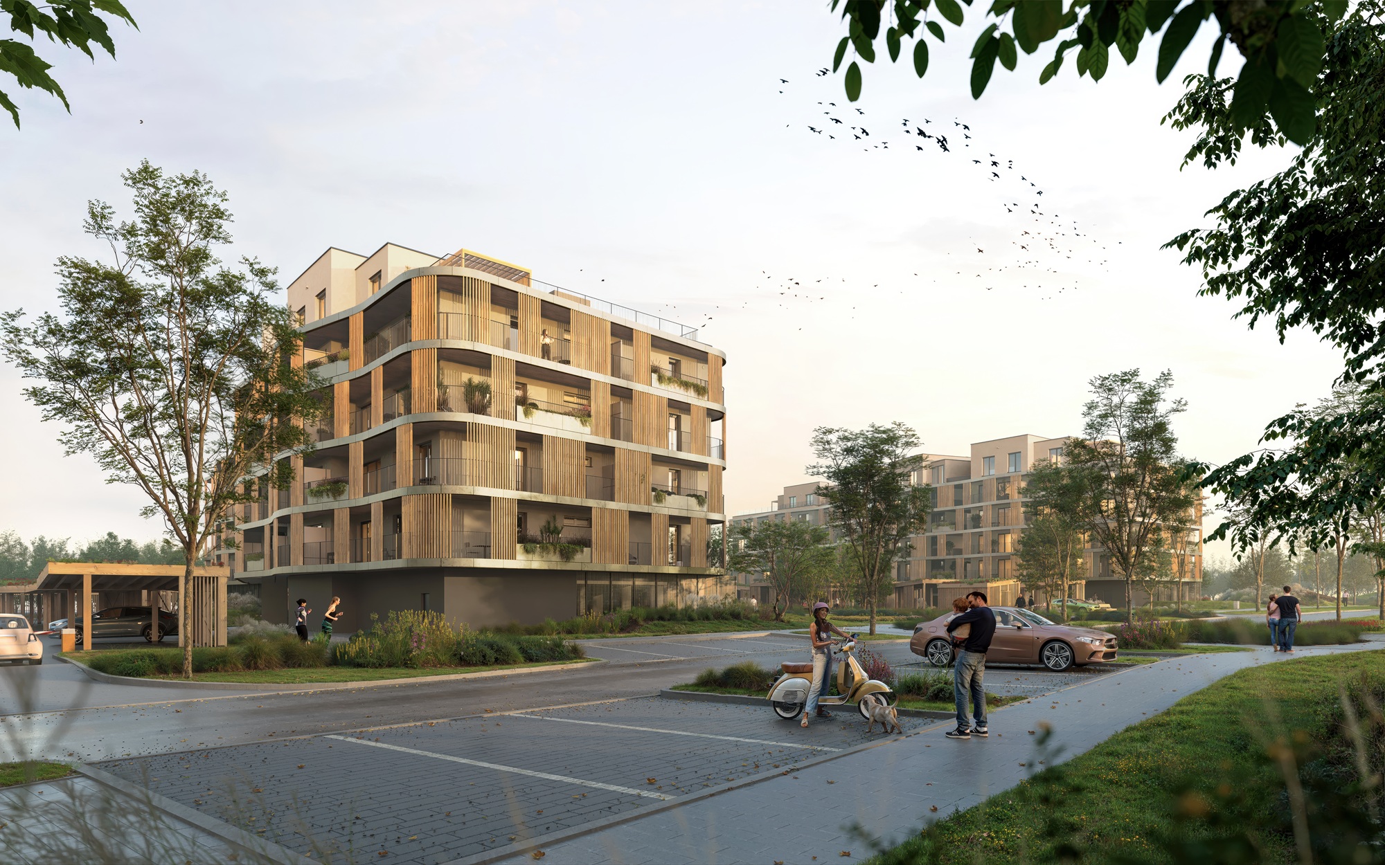 Neméně důležitou roli hraje i veřejný prostor, který se rozroste o nové dětské hřiště, cyklostezku a parkovou plochu přesahující 8 000 m². V rámci celé rezidenční čtvrti tak vznikne přes 15 000 m² zelených ploch, doplněných o venkovní fitness zóny, místa pro společné grilování, komunitní záhony, supermarket, mateřskou školu a pestrou nabídku herních a relaxačních prvků pro obyvatele všech generací.