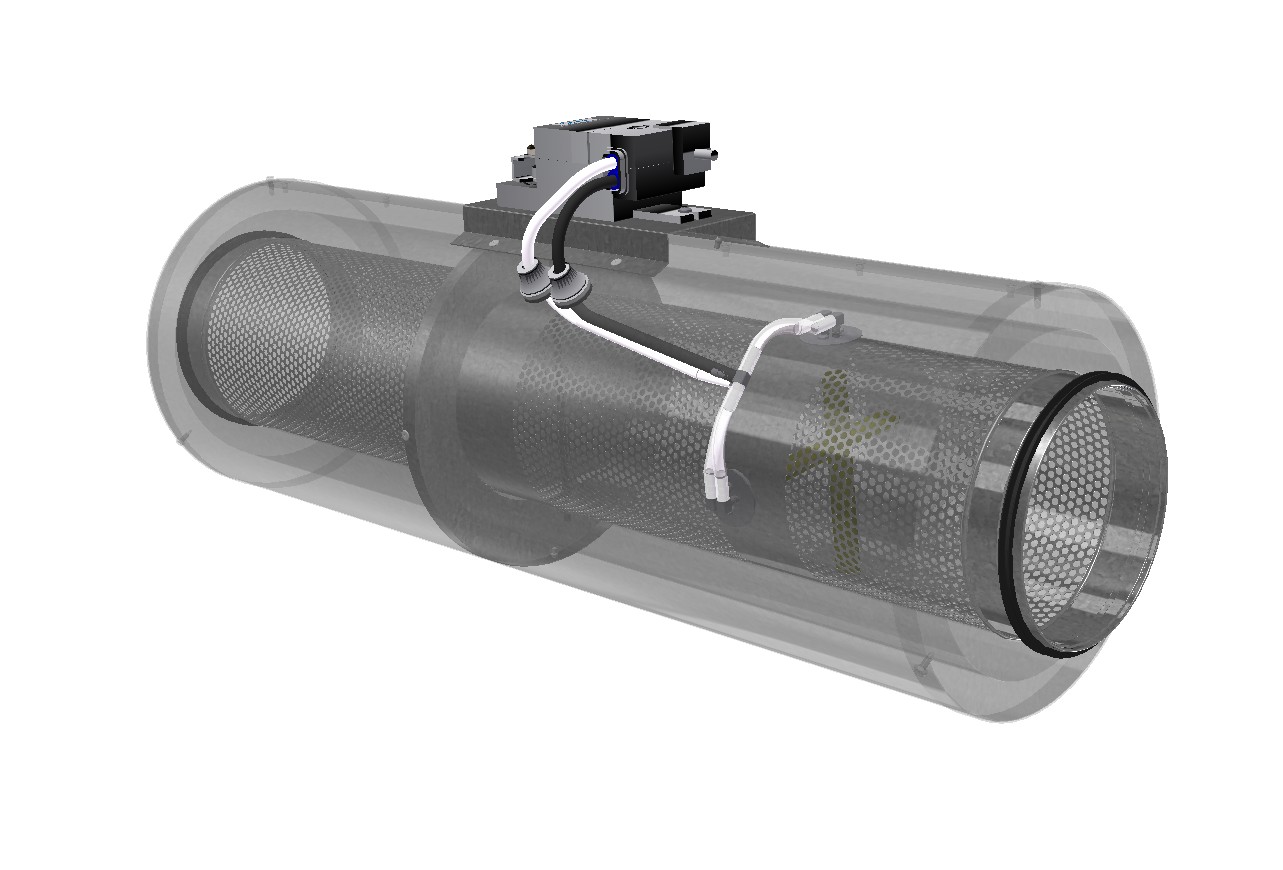 Speciálně navržená konstrukce regulátoru je hybridním řešením regulace průtoku s vestavěným tlumičem hluku, a proto nenavyšuje instalační délku o případný dodatečný tlumič a díky integrované vzduchové bariéře nedochází k proudění vzduchu skrze akusticky pohltivý materiál při plně uzavřené regulační klapce.