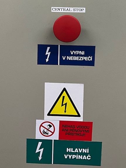 Central stop je „provozní požární vypnutí“, které odstaví tu část elektroinstalace objektu, co při požáru nemusí být funkční, ale ponechá funkční to, co je pro požární bezpečnost a zásah nezbytné.