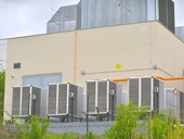 Kaskáda tepelných čerpadel na fasádě bytového domu, kotelna, Praha Řež, foto Master Therm tepelná čerpadla.