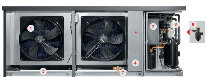 - 2 redundantní chladivové okruhy (4,8 kg + 4,9 kg R290)