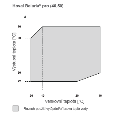 - Výstupní teplota: až 70 °C (v závislosti na venkovní teplotě)