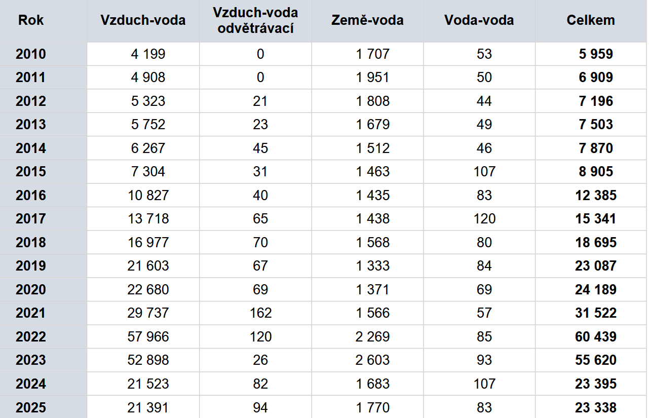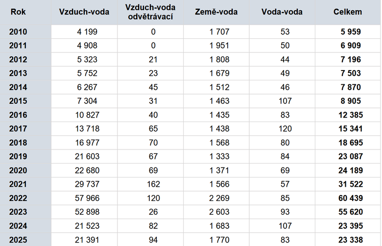 Dodávka tepelných čerpadel na trh v České republice v roce 2025