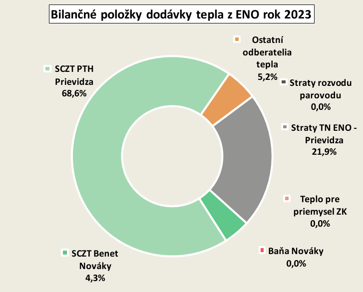 Koncom roka 2023 odstavil zdroj Slovenských elektrární, a.s. Bratislava (SE), odštepný závod Elektrárne Nováky (ENO) dodávku tepla do tepelného napájača 2×DN600 ENO-Prievidza (TN). Príčinou bolo ukončenie výroby elektriny vo všeobecnom hospodárskom záujme (VHZ) z domáceho uhlia. Historicky bolo množstvo dodávaného tepla približne 55,5 GWh, t.j. 0,78 % z celkovej spotreby energie v domácom uhlí (7,0 TWh). Po odpojení priemyslu a vojska v lokalite ENO a po stanovení termínu ukončenia výroby elektriny z domáceho uhlia štát „de facto“ rozhodol o odstavení tepla z ENO do Prievidze. Ako náhrada zdroja KVET ENO boli vybudované celkovo 4 centrálne zdroje (CZ) tepla pri lokalitách zásobovaných teplom, pričom SCZT v mestách Prievidza, Nováky a v obci Zemianske Kostoľany zostali zachované. Teplo sa vyrába na báze OZE a ZPN. Pre dodávku tepla z CZ sa využívajú časti trasy TN pre nové TN 2×DN300 z CZ KVET Cígeľ do Prievidze a TN 2×DN200 zo zdroja Laskár do Novák. V obci Zemianske Kostoľany je inštalovaný CZ tepla na ZPN.