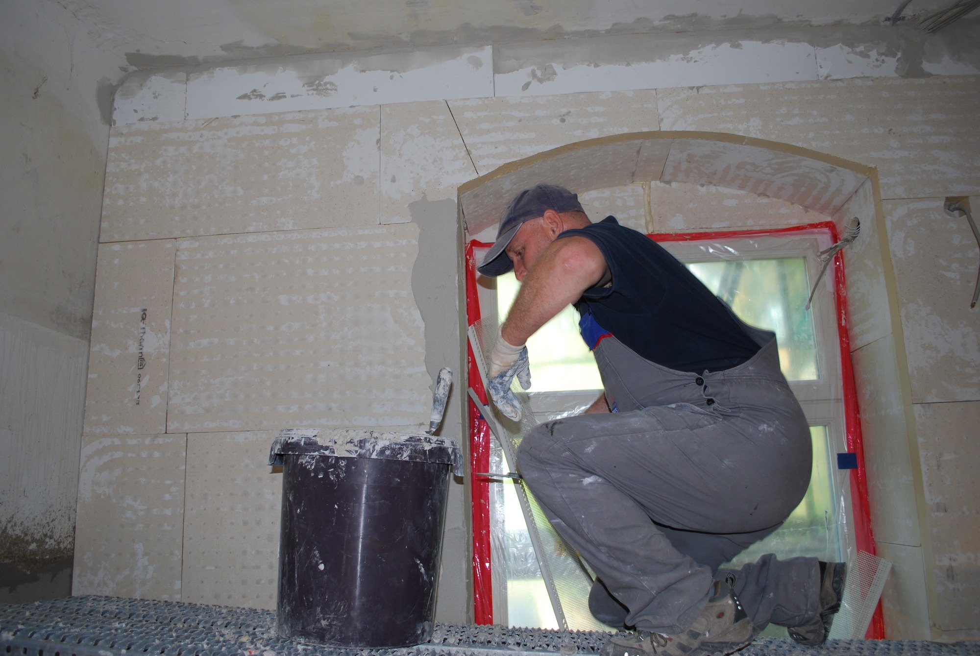 Obr. 5: Lepení vnitřní tepelné izolace vždy na vyrovnaný podklad