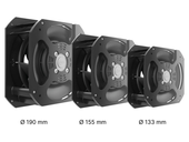 - Radiální axiální – osa rotoru je rovnoběžná se směrem proudění: používají se tam, kde je požadován velký průtok při nízkém odporu (např. vzduchové chladiče, dry-coolery, výkonná ventilace).