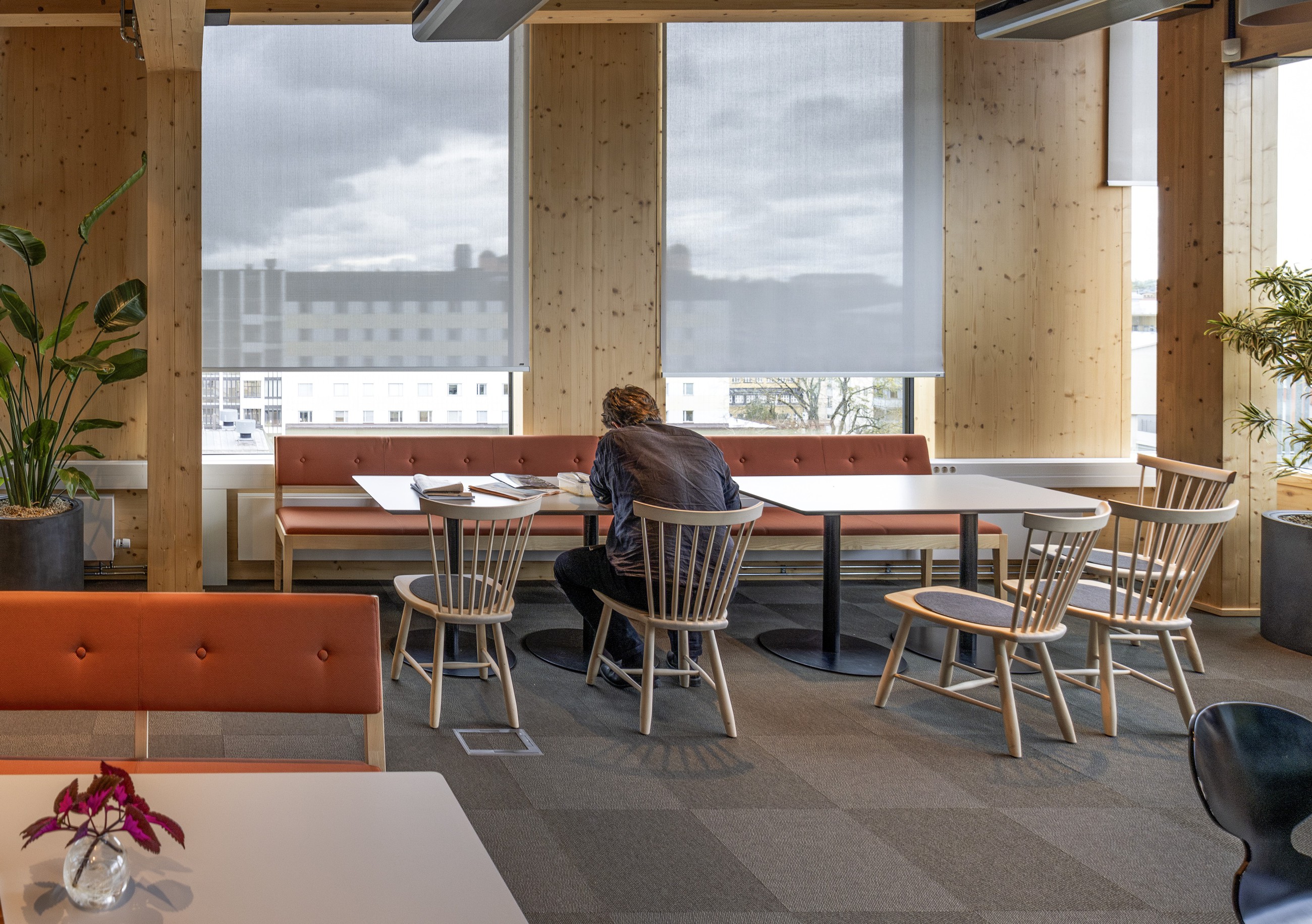 Tmavší odstíny rolet v kombinaci s protislunečním zasklením dávají ostřejší viditelnost ven, ale ochrana před oslněním zůstává zachována. Faktor otevřenosti protislunečních rolet je volitelný, ale jako nejefektivnější z hlediska světla, oslnění a viditelnosti ven lze doporučit OF na úrovni 4 %.