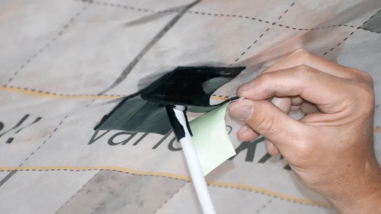 1. Odřízněte dva proužky pásky Isover Vario® Stretch dlouhé přibližně 10–15 cm.