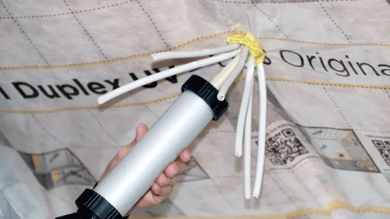 2. Kabely stáhněte do kompaktního svazku – ideálně stahovací páskou nebo lepicí páskou. Okolo svazku znovu aplikujte tmel a nechte zaschnout.