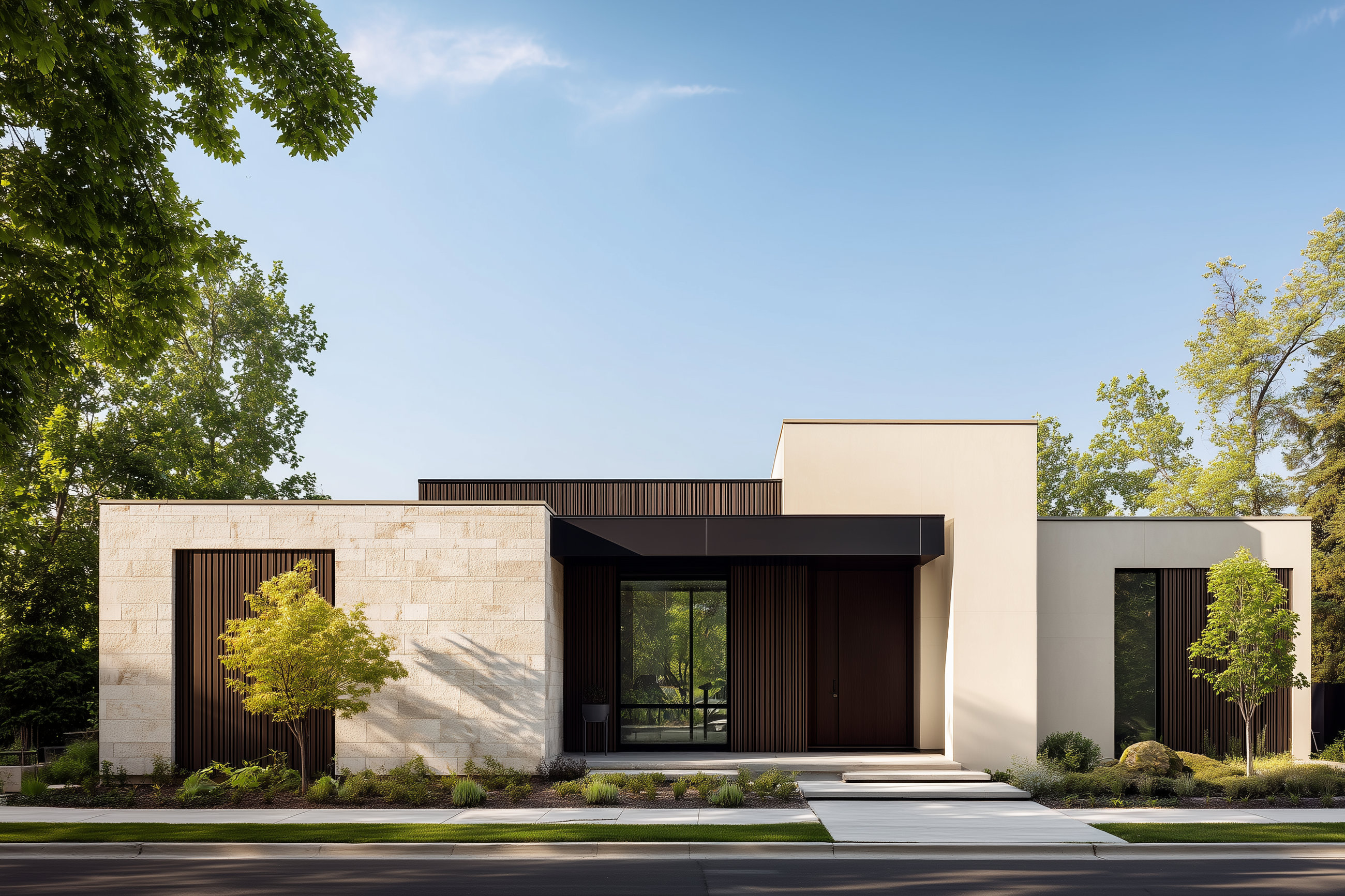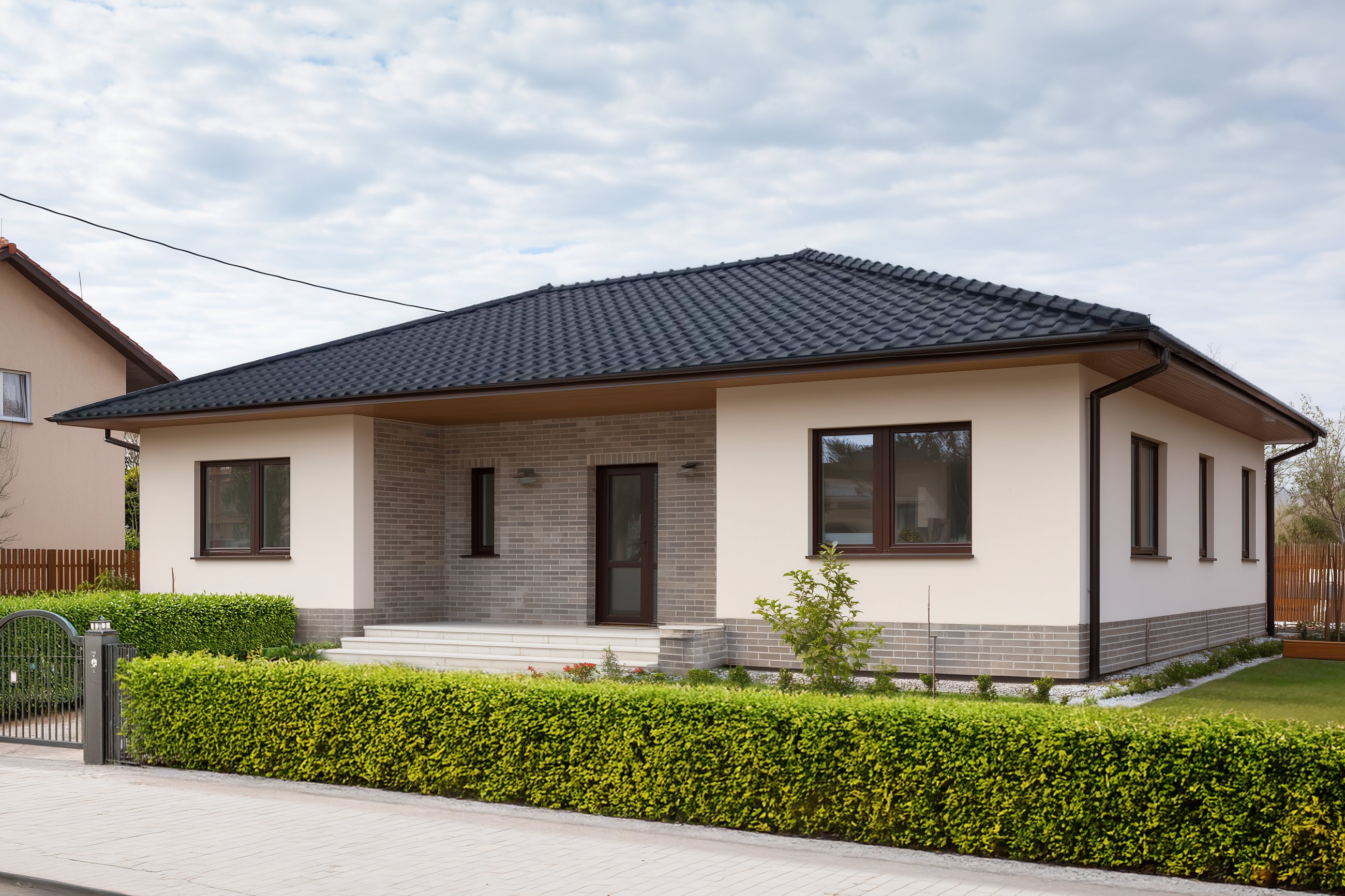 Fasáda může mít podobu přesně podle představ investora – od moderních keramických ploch po přírodní kamenné akcenty.